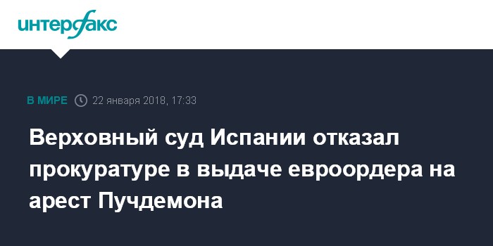 Москва. 22 января. INTERFAX.RU - Судья Верховного суда Испании Пабло Льярена отклонил запрос прокуратуры Испании повторно выдать ордер на арест бывшего главы женералитата Каталонии Карлеса Пучдемона, сообщает в понедельник газета El Pais.