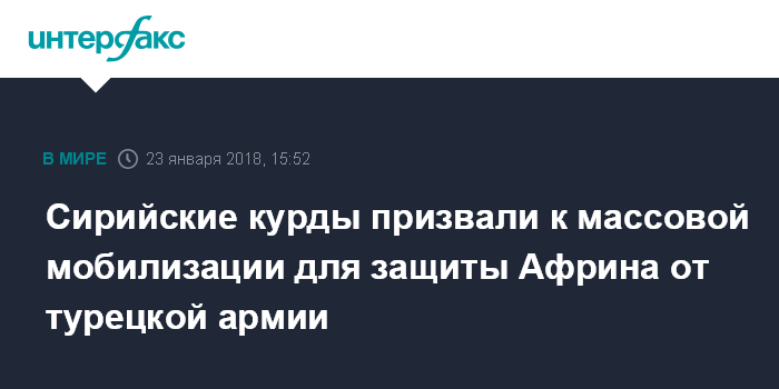 "Мы призываем всех наших людей защитить Африн и его гордость, а также внести свой вклад в любые, связанные с этой (целью - ИФ), мероприятия", - приводят СМИ выдержки из заявления курдской стороны.