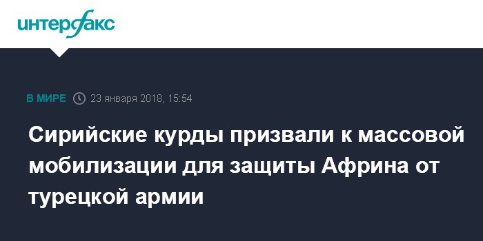 "Мы призываем всех наших людей защитить Африн и его гордость, а также внести свой вклад в любые, связанные с этой (целью - ИФ), мероприятия", - приводят СМИ выдержки из заявления курдской стороны.