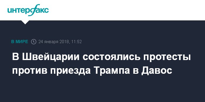 Москва. 24 января. INTERFAX.RU - Сотни человек вышли на акции протеста по всей Швейцарии, чтобы выразить недовольство планами президента США Дональда Трампа приехать на Всемирный экономический форум в Давос, сообщают в среду швейцарские СМИ.