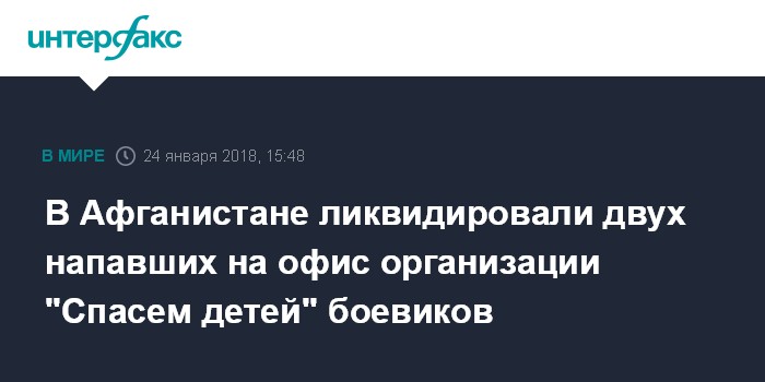 В Афганистане ликвидировали двух напавших на офис организации "Спасем детей" боевиков