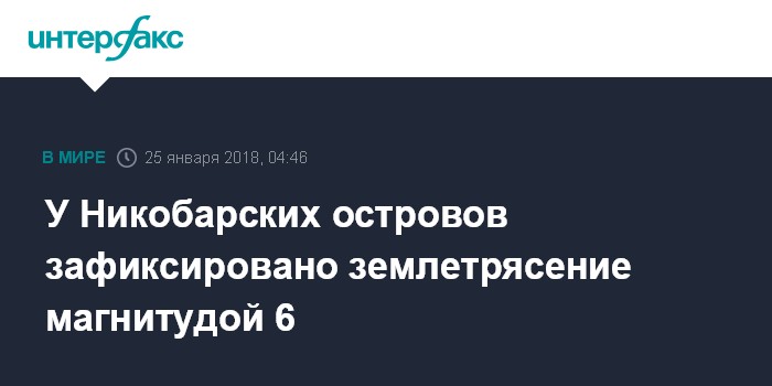 У Никобарских островов зафиксировано землетрясение магнитудой 6