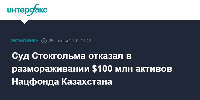 Москва. 25 января. INTERFAX.RU - Окружной суд Стокгольма не стал отменять решение о замораживании активов Национального фонда Казахстана в размере $100 млн, находящихся в Швеции, сообщило министерство юстиции республики.