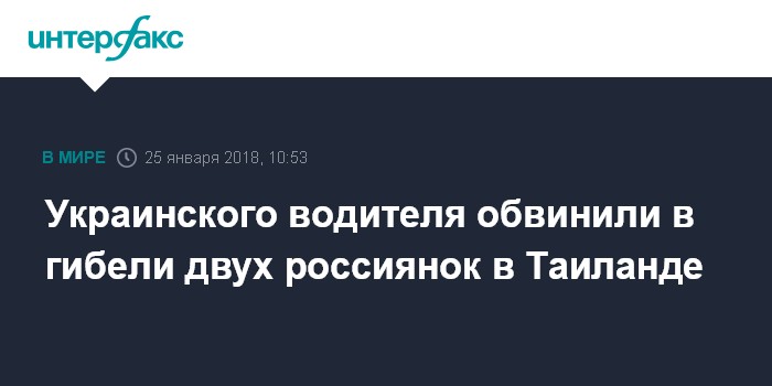 Москва. 25 января. INTERFAX.RU - Гражданину Украины предъявлены обвинения в неосторожном вождении после того, как в ДТП в Таиланде с его участием погибли две россиянки, сообщает в четверг портал Phuket News.