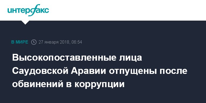 Высокопоставленные лица Саудовской Аравии отпущены после обвинений в коррупции