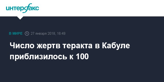 Москва. 27 января. INTERFAX.RU - Не менее 95 человек погибли в результате совершенного в субботу теракта в центре Кабула, сообщает BBC со ссылкой на афганские власти.