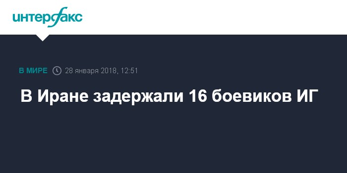 Москва. 28 января. INTERFAX.RU - На западе Ирана задержаны 16 боевиков террористической группировки "Исламское государство" (запрещена в России), сообщил СМИ в воскресенье командующий сухопутных сил Корпуса стражей исламской революции (КСИР) Мохаммад Пакпур.
