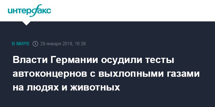 Министр транспорта ФРГ Кристиан Шмидт также резко раскритиковал проведение тестов на людях и обезьянах. Подобные испытания организуются не с научными целями, а исключительно ради воздействия на общественное мнение. Автокомпании должны незамедлительно и подробно изложить свою позицию по этому вопросу, говорится в заявлении Минтранса.