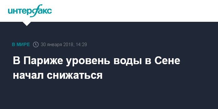 Москва. 30 января. INTERFAX.RU - Уровень воды в реке Сене во французской столице во вторник начал постепенно снижаться, сообщают местные СМИ.