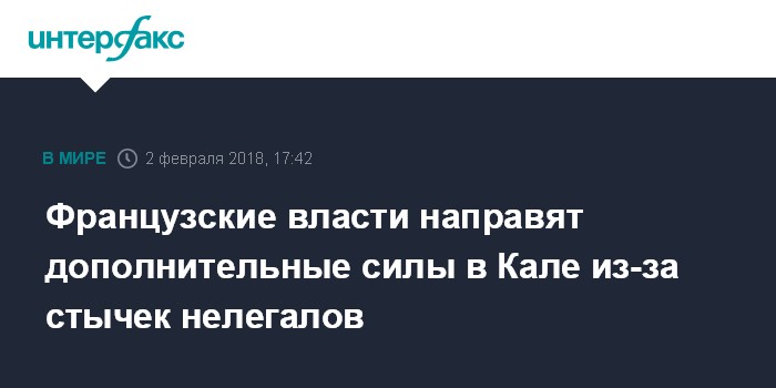 Москва. 2 февраля. INTERFAX.RU - Правительство Франции отправит дополнительные отряды полиции в портовый город Кале после недавней вспышки насилия среди нелегальных иммигрантов, сообщает в пятницу Bloomberg со ссылкой на главу МВД республики Жерара Коллона.