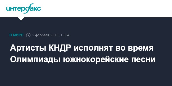 Москва. 2 февраля. INTERFAX.RU - Деятели искусств КНДР во время поездки на Олимпийские игры, которые пройдут в Пхенчхане, исполнят южнокорейские песни, передает в пятницу телеканал YTN.