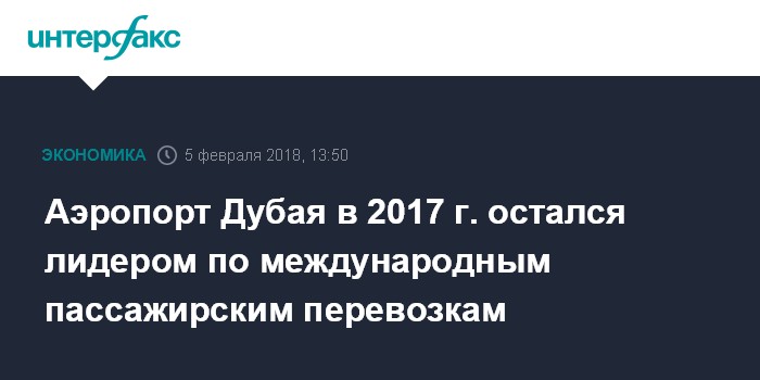 Москва. 5 февраля. INTERFAX.RU - Международный аэропорт Дубая (ОАЭ) в 2017 году сохранил звание самого загруженного аэропорта мира по объему международных пассажирских перевозок.
