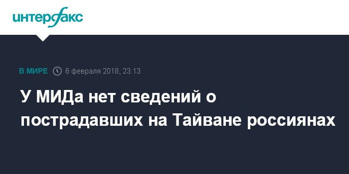 У МИДа нет сведений о пострадавших на Тайване россиянах