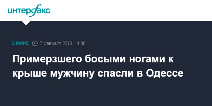 Москва. 7 февраля. INTERFAX.RU - Сотрудники патрульной полиции Одессы спасли мужчину, который примерз босыми ногами к крыше дома.