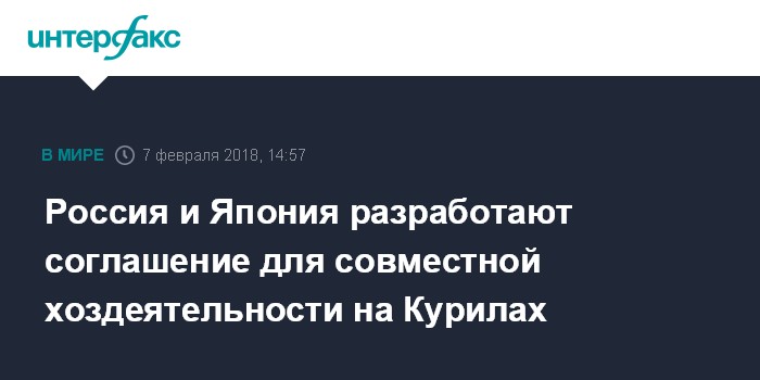 Москва. 7 февраля. INTERFAX.RU - Япония и Россия намерены разработать к следующей встрече на уровне замминистров двух стран юридическую основу для ведения совместной хозяйственной деятельности на Курильских островах, заявил начальник политического отдела посольства Японии в России Ёсида Кэнсукэ.