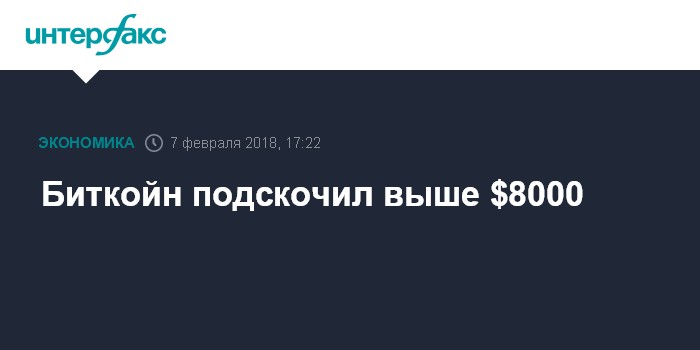 Москва. 7 февраля. INTERFAX.RU - Биткойн в среду торгуется выше отметки в $8000 спустя всего один день после падения криптовалюты ниже $6000.