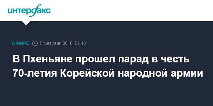 Москва. 8 февраля. INTERFAX.RU - Парад, приуроченный к 70-летию основания Корейской народной армии (КНА), состоялся в четверг на площади имени Ким Ир Сена в Пхеньяне, сообщает Associated Press