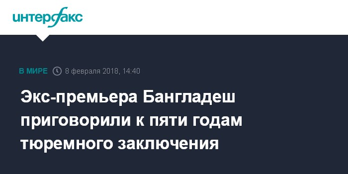 Экс-премьера Бангладеш приговорили к пяти годам тюремного заключения