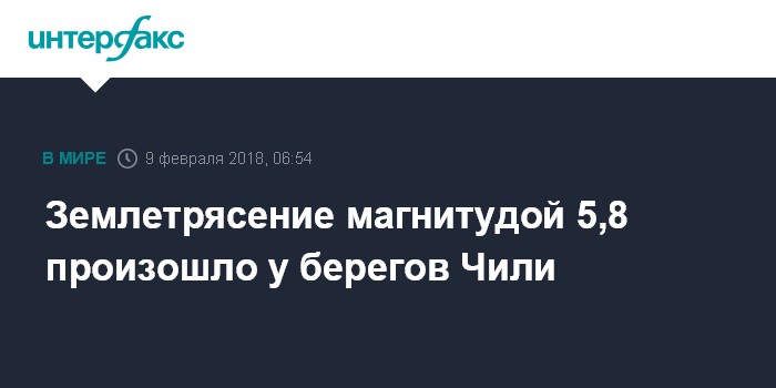 Москва. 9 февраля. INTERFAX.RU - Подземный толчок магнитудой 5,8 зафиксирован у побережья Чили, сообщает Алтае-Саянский филиал Единой Геофизической службы РАН.