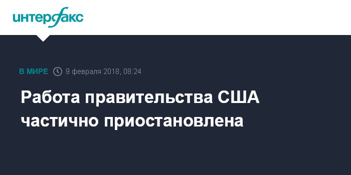 Москва. 9 февраля. INTERFAX.RU - Работа правительства США частично приостановлена, поскольку Конгресс пока так и не смог принять законопроект о временном его финансировании из-за продолжающейся дискуссии вокруг соглашения по бюджетным вопросам, сообщает агентство Bloomberg.