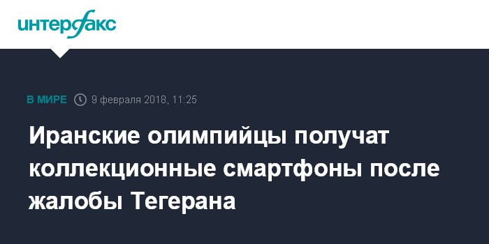 Москва. 9 февраля. INTERFAX.RU - Международный олимпийский комитет отозвал решение не выдавать коллекционные смартфоны атлетам из Ирана после того, как иранский МИД выразил жалобу южнокорейскому послу, сообщил в пятницу иранский телеканал "Пресс-ТВ".