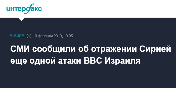 Москва. 10 февраля. INTERFAX.RU - Сирийские системы ПВО отразили еще одну атаку ВВС Израиля, сообщает в субботу сирийское государственное телевидение.