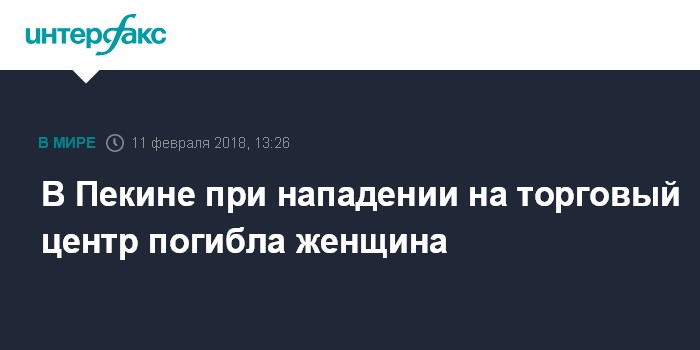 Москва. 11 февраля. INTERFAX.RU - Женщина стала жертвой нападения вооруженного ножом мужчины на посетителей торгового центра в китайской столице, еще 12 человек получили ранения, сообщила местная полиция.
