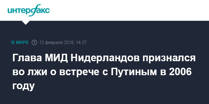 Глава МИД Нидерландов признался во лжи о встрече с Путиным в 2006 году