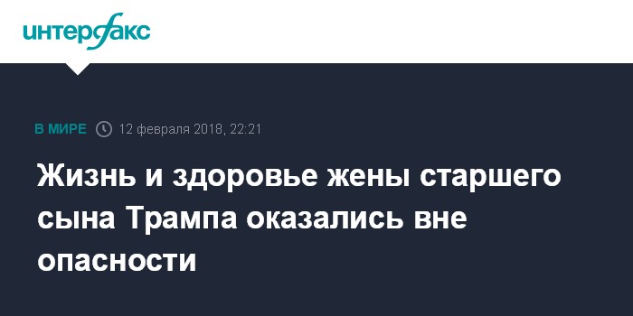 Жизнь и здоровье жены старшего сына Трампа оказались вне опасности