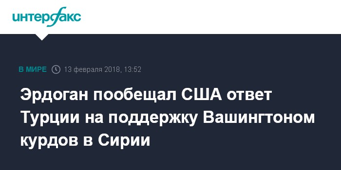 Москва. 13 февраля. INTERFAX.RU - Решение США увеличить финансовую поддержку Сирийских демократических сил повлияет на решения, принимаемые Анкарой, заявил президент Турции Реджеп Тайип Эрдоган.