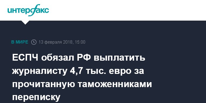 ЕСПЧ обязал РФ выплатить журналисту 4,7 тыс. евро за прочитанную таможенниками переписку