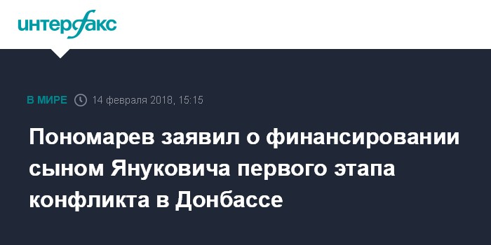 Москва. 14 февраля. INTERFAX.RU - Первоначальный этап конфликта в Донбассе и создания самопровозглашенных Донецкой и Луганской народных республик финансировался сыном экс-президента Украины Виктора Януковича Александром, утверждает российский экс-депутат Госдумы Илья Пономарев.