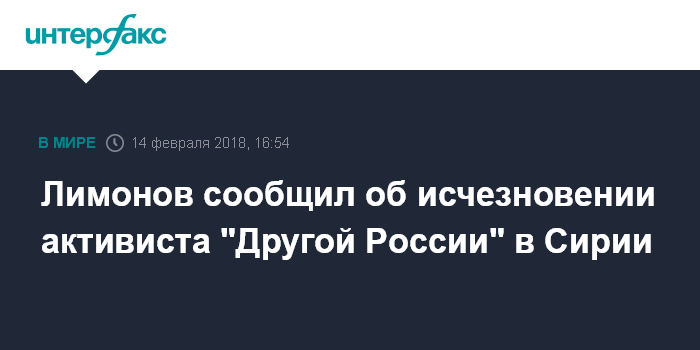 Лимонов сообщил об исчезновении активиста "Другой России" в Сирии