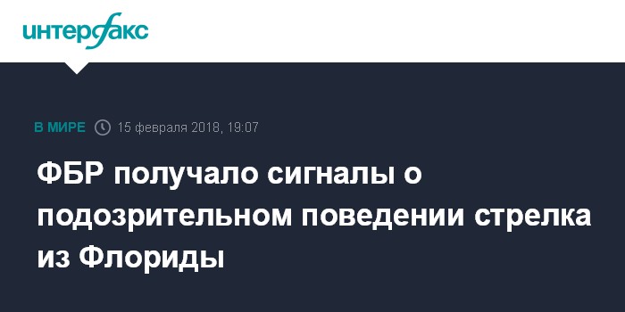 Москва. 15 февраля. INTERFAX.RU - Федеральное бюро расследований США знало о странностях в поведении Николаса Круза, который 14 февраля расстрелял учеников школы в городе Парклэнд в штате Флорида.