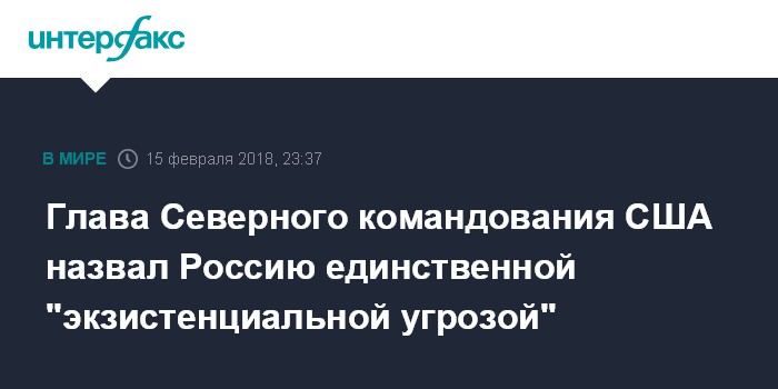 Глава Северного командования США назвал Россию единственной "экзистенциальной угрозой"