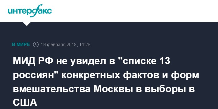 МИД РФ не увидел в "списке 13 россиян" конкретных фактов и форм вмешательства Москвы в выборы в США