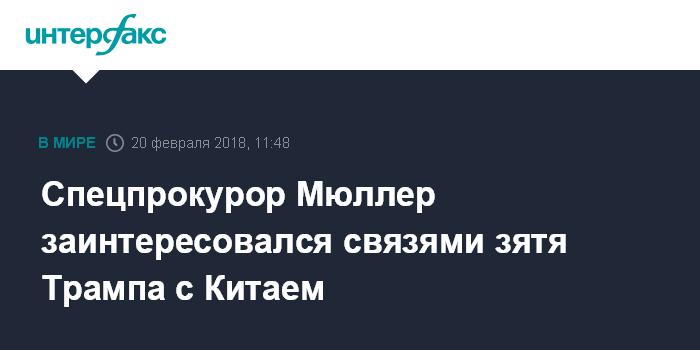 Спецпрокурор Мюллер заинтересовался связями зятя Трампа с Китаем