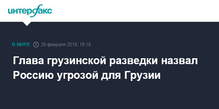 Москва. 20 февраля. INTERFAX.RU - Глава Службы разведки Грузии Давид Суджашвили назвал угрозы для Грузии, Россия оказалась в их числе.