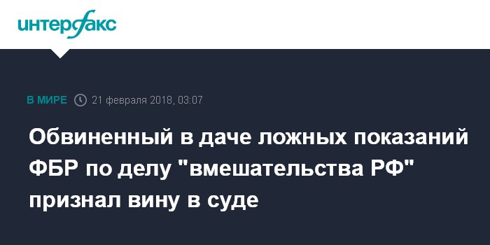 Обвиненный в даче ложных показаний ФБР по делу "вмешательства РФ" признал вину в суде