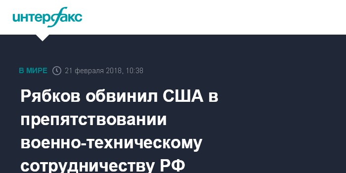 Москва. 21 февраля. INTERFAX.RU - США целенаправленно пытаются осложнить военно-техническое сотрудничество России с зарубежными странами, прибегая к шантажу и запугиванию, заявил замглавы МИД России Сергей Рябков.