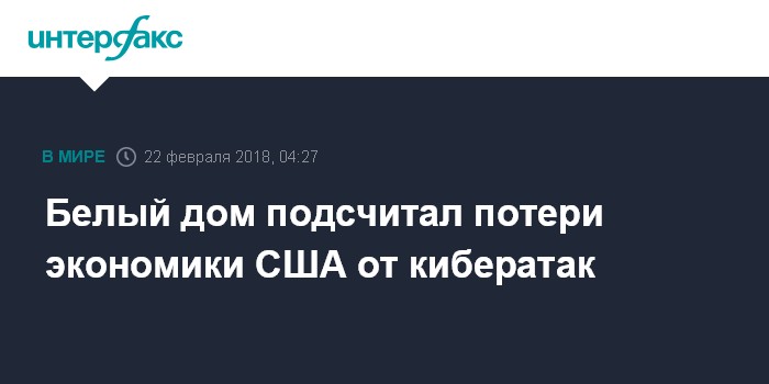 Москва. 22 февраля. INTERFAX.RU - Вредоносная киберактивность стоила экономике США в 2016 году от $57 млрд до $109 млрд, говорится в докладе Консультативного экономического совета при президенте США.