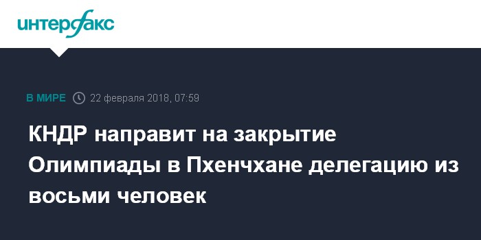 КНДР направит на закрытие Олимпиады в Пхенчхане делегацию из восьми человек