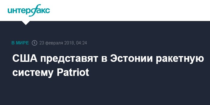 Москва. 23 февраля. INTERFAX.RU - Вооруженные силы США представят в пятницу в Таллине ракетную систему дальнего действия Patriot.