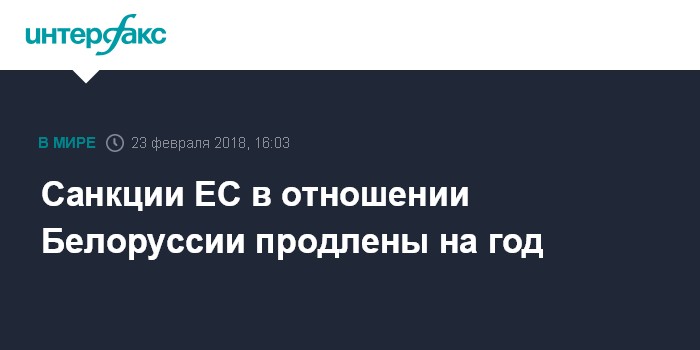 Москва. 23 февраля. INTERFAX.RU - Европейский союз на год продлил ряд ограничительных мер в отношении Белоруссии, говорится в пресс-релизе Совета ЕС.