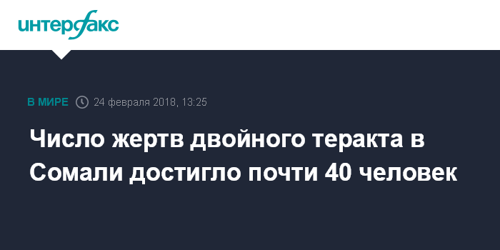 Число жертв двойного теракта в Сомали достигло почти 40 человек