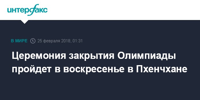 Москва. 25 февраля. INTERFAX.RU - Церемония закрытия зимних Олимпийских игр состоится в Пхенчхане в воскресенье.