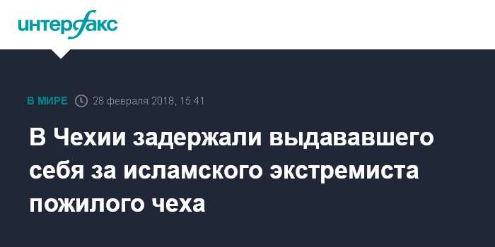 В Чехии задержали выдававшего себя за исламского экстремиста пожилого чеха