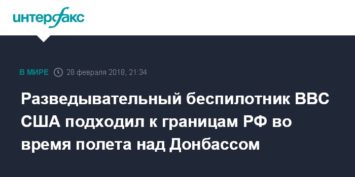 Москва. 28 февраля. INTERFAX.RU - Стратегический беспилотный летательный аппарат ВВС США RQ-4B во время разведывательного полета в среду вдоль линии разграничения в Донбассе несколько раз приближался к российским границам, сообщается на западных авиационных ресурсах.