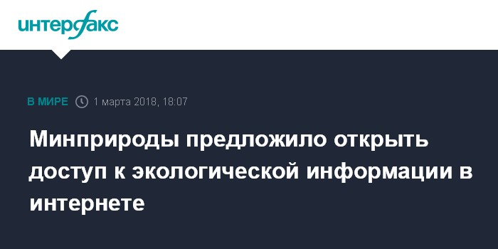 Москва. 1 марта. INTERFAX.RU - Минприроды России внесло в правительство законопроект, которым предлагается открыть доступ к экологической информации в интернете, сообщили в пресс-службе ведомства в четверг.