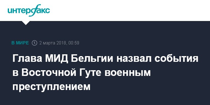 "То, что происходит сегодня, особенно в Восточной Гуте, - это варварство, это военное преступление", - сказал глава бельгийского МИД в интервью телеканалу RTBF вечером в четверг.